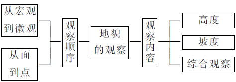 除了观察高度、坡度、坡向等形态要素,还要注意观察地貌的形状、面积、空间分布状况等。