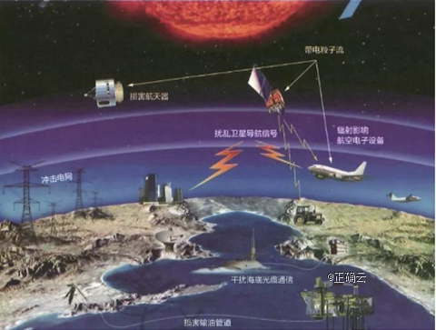 太阳活动对地球有显著的影响。当太阳活动增强时,太阳风变得强劲,会扰动地球的磁场和大气层,产生磁暴、极光等现象。当这种扰动足够强烈时,还会对卫星导航、空间通信、电网、航空航天等人类活动产生灾害性的影响(图1.19)。